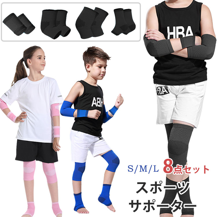 【2690円→実質2636円 P2!】スポーツサポーター 膝サポーター 8点セット キッズ 足首 手首 肘 膝パット ひざ ストレッチ 通気性 吸汗性 膝当て アウトドア バレーボール ランニング 山登り 部活 小学生 中学生 高校生 バスケットボール
