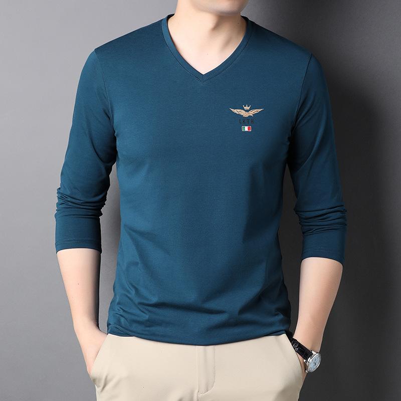 Tシャツ メンズ 長袖 Vネック スリム 綿 無地 トップス カットソー プルオーバー 春秋 カジュアル スタイル