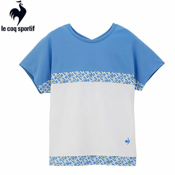 ルコックスポルティフ レディース テニス 2wayゲームシャツ ホワイトブルー ユニフォーム 半袖 吸汗 速乾 UVカット JTA公認 le coq sportif LCQQTWXJA03WHBL