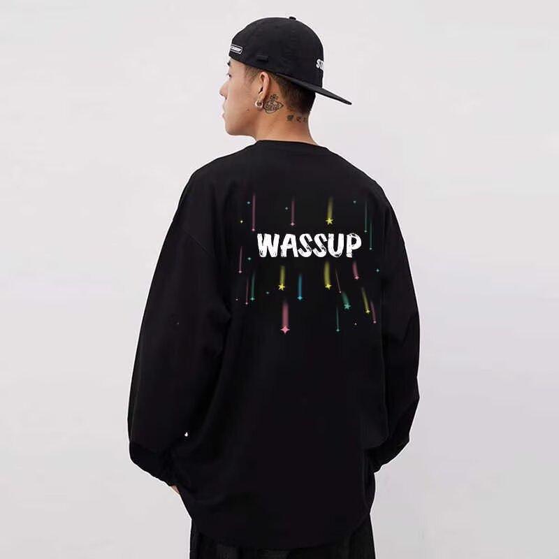 Tシャツ 男性用 長袖 コットン プリント柄 ラウンドネック 春秋 普段着 リラックス ゆったりシルエット 白 黒 グレー