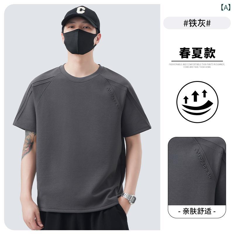 Tシャツ 無地 ゼリー コットン ヘビー 半袖 Tシャツ メンズ 夏 2025 冷感 ラウンドネックトップス メンズカジュアル