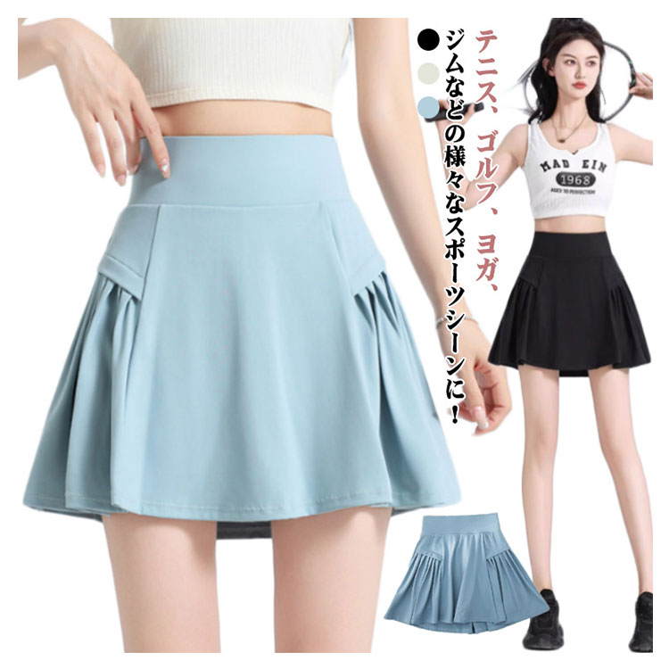 スカート フィットネス ジム スポーツ ヨガ テニス ゴルフ インナーパンツ付き ストレッチ フレア 美脚 着痩せ