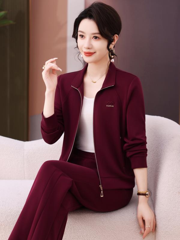セットアップ レディース スウェット トレーナー スタンドカラー 長袖 長ズボン ジップアップ スポーツウェア カジュアル 韓国 小柄 低身長 普段使い 部屋着 春秋 ポリエステル レーヨン ポリウレタン チェリーレッド 紫 ロイヤルブルー ピンク