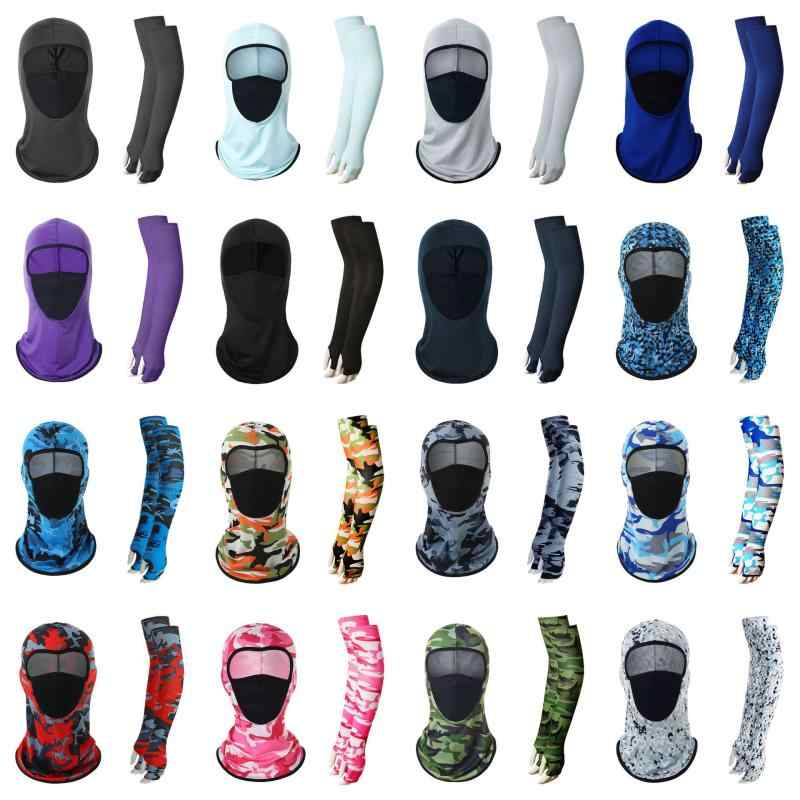 アウトドア フェイスカバー アームカバー バラクラバ セット 男女兼用 サイクリング UVカット 紫外線対策 通気性 メッシュ 指穴付き 再生繊維 ストレッチ(x2)