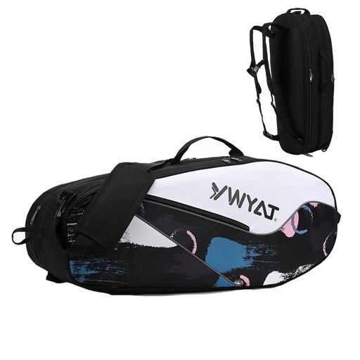 FMAFNLYバドミントンテニスラケットケースリュック6本2室シューズ収納防水素材持ち運び簡単ブラック