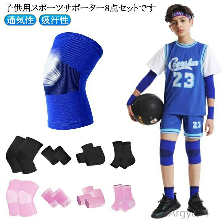【送料無料】プロテクター ジュニア 足首 ストレッチ 膝痛 ひざ キッズ 8点セット 膝サポーター スポーツサポーター