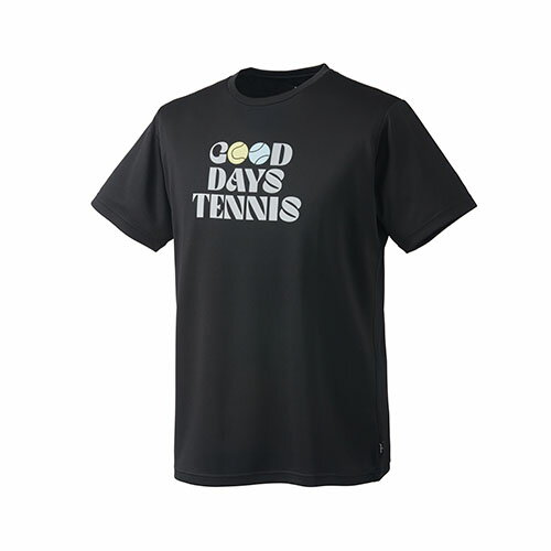 メーカープリンス 品番MF5029-165 カラーブラック(165) サイズS/M/L/LL 対象性別メンズ 素材ドライニット(ポリエステル100%) 機能吸汗速乾/UPF50 発売日2025年7月 80年代のアメリカを彷彿とさせる字体とテニスボールをプリントしたTシャツ。