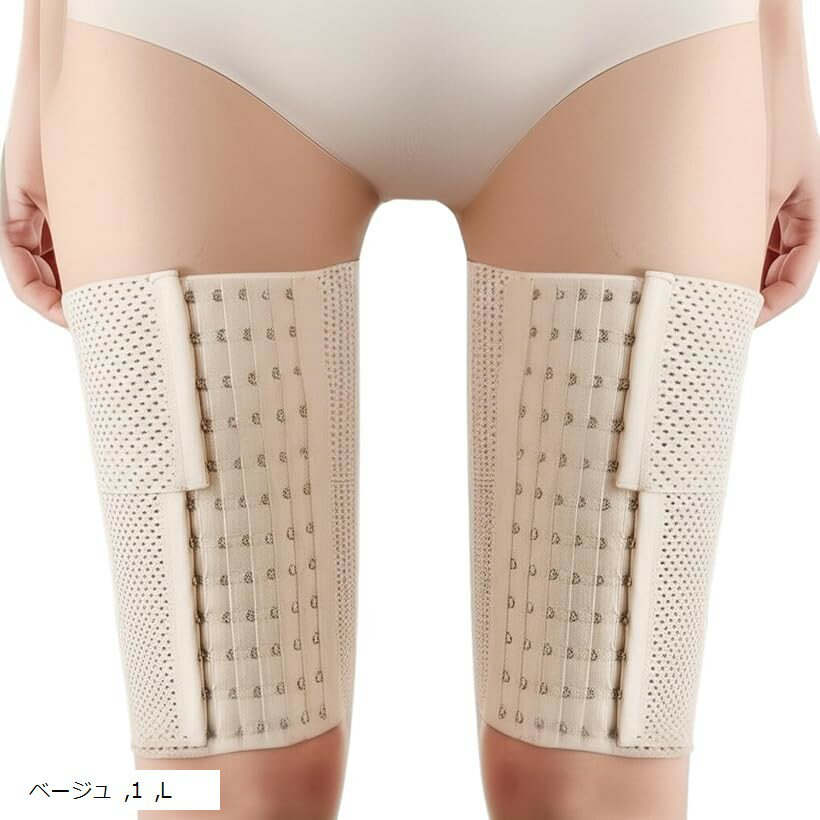 太もも 引き締め 着圧 補正 サポーター 美脚 足痩せ サポート 上下調整 伸縮 速乾 延長ホック 美スタイル (ベージュ, L)