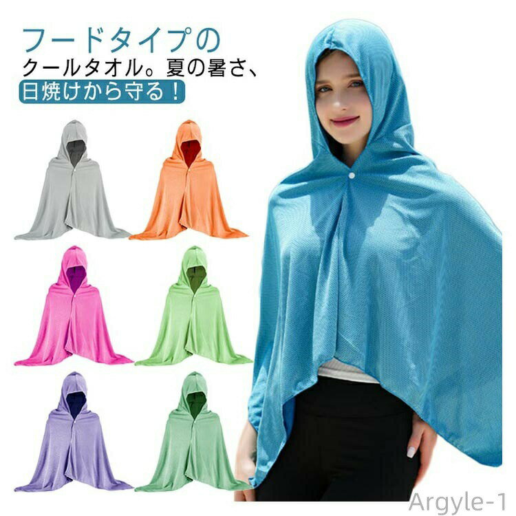 ・フードタイプのクールタオル。夏の暑さ、日焼けから守る!・髪の毛や頭、肩全体を紫外線から守るフード付きタオルは、スナップボタンで簡単に着られる点もポイント。・頭から首、腕までしっかりカバーするフード付きポンチョタイプなので、カーディガン感覚で使う事ができる接触冷感タオルです。・薄手でコンパクトに丸められるので、かさばらずに持ち運べます。 サイズ F サイズについての説明 フリーサイズ:60*145cm 素材 ポリエステル ナイロン 色 オレンジ ブルー グレー ローズレッド ライトグリーン パープル グリーン 備考 ●サイズ詳細等の測り方はスタッフ間で統一、徹底はしておりますが、実寸は商品によって若干の誤差(1cm〜3cm )がある場合がございますので、予めご了承ください。 ●製造ロットにより、細部形状の違いや、同色でも色味に多少の誤差が生じます。 ●パッケージは改良のため予告なく仕様を変更する場合があります。 ▼商品の色は、撮影時の光や、お客様のモニターの色具合などにより、実際の商品と異なる場合がございます。あらかじめ、ご了承ください。 ▼生地の特性上、やや匂いが強く感じられるものもございます。数日のご使用や陰干しなどで気になる匂いはほとんど感じられなくなります。 ▼同じ商品でも生産時期により形やサイズ、カラーに多少の誤差が生じる場合もございます。 ▼他店舗でも在庫を共有して販売をしている為、受注後欠品となる場合もございます。予め、ご了承お願い申し上げます。 ▼出荷前に全て検品を行っておりますが、万が一商品に不具合があった場合は、お問い合わせフォームまたはメールよりご連絡頂けます様お願い申し上げます。速やかに対応致しますのでご安心ください。