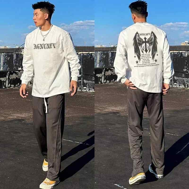 Tシャツ メンズ 長袖 コットン 春秋 トップス プルオーバー ラウンドネック プリント 普段使い ブラック ホワイト ネイビー グレー ベージュ