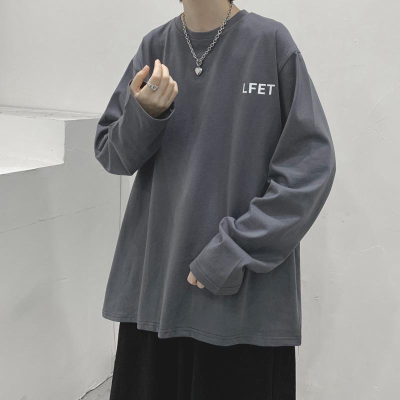 Tシャツ メンズ 長袖 春秋 ラウンドネック プルオーバー ポリエステル 接触冷感 プリント ルーズフィット トップス カットソー ホワイト ブラック グレー ブルー デニム 普段使い