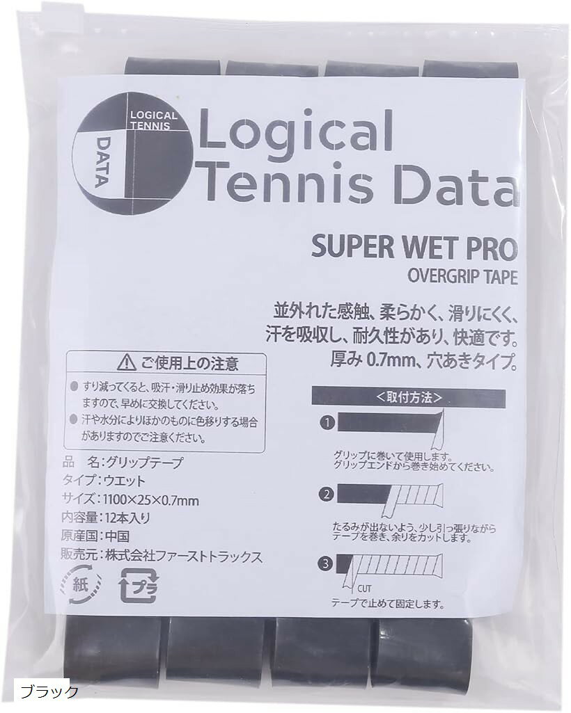 グリップテープ ウエット タイプ 12個セット テニス バドミントン (ブラック)