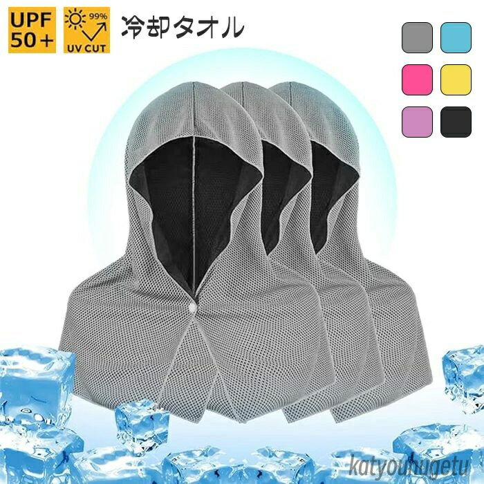 【送料無料】冷感タオル フード付き 冷却 紫外線対策 UVカット 優れた吸水性?速乾性 ポンチョ クールケープ 冷感クールタオル 抗菌