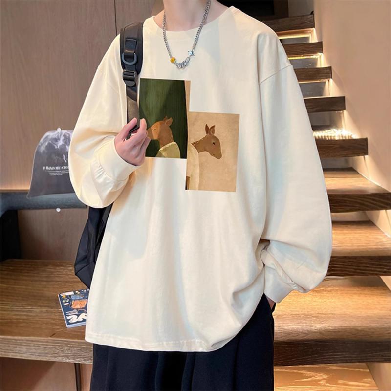 Tシャツ メンズ 男性用 酒 красный レトロ 長袖 春秋物 スウェット トレーナー ゆったり 大きめサイズ ラウンドネック 普段使い 黒 白 グレー ポリエステル