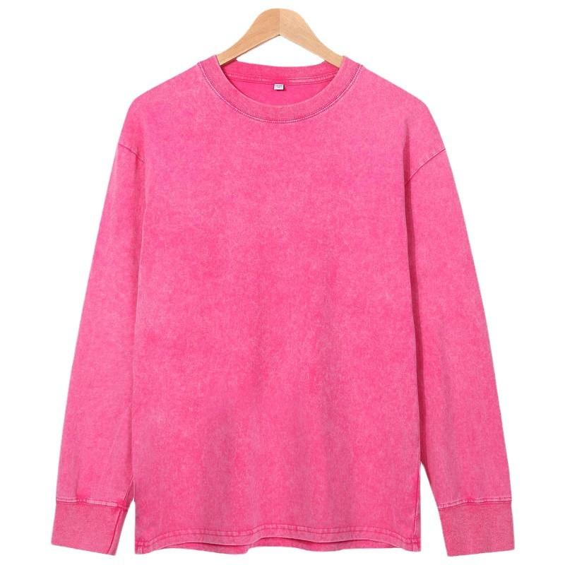 Tシャツ 男性用 長袖 美式 レトロ 古着風 ウォッシュ加工 ラウンドネック カットソー 綿 ドロップショルダー ブラック グレー カーキ ピンク系 秋冬