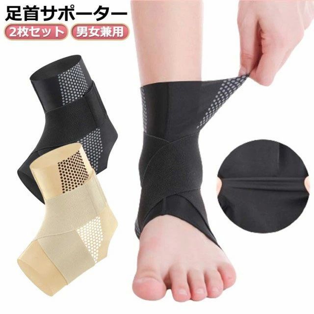 足首サポーター 2枚セット 男女兼用! クロスベルトで強力固定!簡単に装着できズレにくく、より安定したサポートが可能です。 洗濯洗いが可能なので、いつでも清潔に使うことができます。 マジックテープで簡単着脱、締め付け加減を微調整可能。 通気性に優れ長時間の装着でも蒸れにくくシーズン問わず快適にご使用になれます! 踵部分は足首がしっかり固定できるように、オープンヒールにしました。 怪我や捻挫などの歩行補助はもちろん、怪我の予防としての装着もおススメ。しっかり足首を固定し怪我なく日常やスポーツを楽しんでください。サイズ2枚セットサイズについての説明M 足首関節周り19-21cm お勧め足幅23-24cmL 足首関節周り21-23cm お勧め足幅24-25cmXL足首関節周り23-25cm お勧め足幅25-26cmサイズ表の実寸法は商品によって1-3cm程度の誤差がある場合がございます。素材ナイロン+ポリウレタン+ポリエステル色ブラックM ブラックL ベージュM ベージュL ベージュXL足首サポーター 2枚セット 男女兼用! クロスベルトで強力固定!簡単に装着できズレにくく、より安定したサポートが可能です。 洗濯洗いが可能なので、いつでも清潔に使うことができます。 マジックテープで簡単着脱、締め付け加減を微調整可能。 通気性に優れ長時間の装着でも蒸れにくくシーズン問わず快適にご使用になれます! 踵部分は足首がしっかり固定できるように、オープンヒールにしました。 怪我や捻挫などの歩行補助はもちろん、怪我の予防としての装着もおススメ。しっかり足首を固定し怪我なく日常やスポーツを楽しんでください。サイズ2枚セットサイズについての説明M 足首関節周り19-21cm お勧め足幅23-24cmL 足首関節周り21-23cm お勧め足幅24-25cmXL足首関節周り23-25cm お勧め足幅25-26cmサイズ表の実寸法は商品によって1-3cm程度の誤差がある場合がございます。素材ナイロン+ポリウレタン+ポリエステル色ブラックM ブラックL ベージュM ベージュL ベージュXL