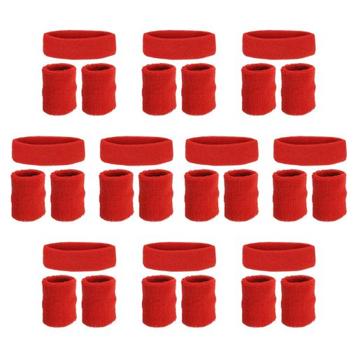 PATIKILスウェットバンドヘッドバンドリストバンド10セット/30個スウェットバンドテリークロススポーツバスケットボールテニスアスレチックジムトレーニングレッド