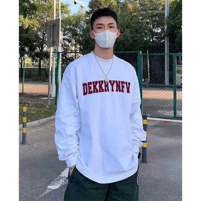 Tシャツ メンズ 男性用 長袖 コットン プリント クルーネック プルオーバー ゆったり 春秋 トップス カットソー カジュアル スタイル 白 杏色