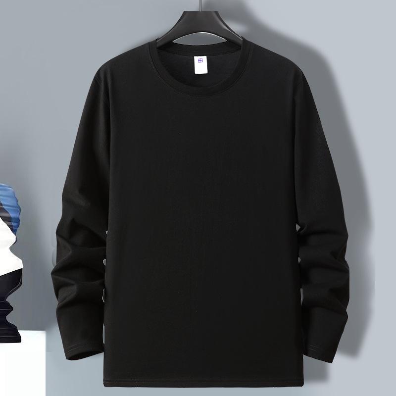 Tシャツ メンズ 春秋 長袖 200g 綿 コットン 無地 白 黒 クルーネック カットソー インナー 普段使い(x2)