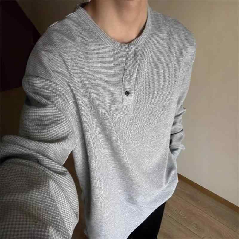 Tシャツ メンズ 男性用 ワッフル 長袖 ヘンリーネック カットソー プルオーバー グレー グレージュ ゆったり リラックス カジュアル スタイル 春秋・スタイル: 美式復古・素材: ポリエステル繊維・柄: 無地・フィット: ゆったり・対象年齢: 18-24歳.成人・タイプ: プルオーバー・ネックライン: ラウンドネック・袖丈: 長袖・フード: なし・・シーズン: 春.秋.夏・生地: ポリエステル繊維・素材割合: 81-90%・シーン: カジュアル・プリントテーマ: なし・加工: 防しわ加工・カラー: グレー.ブラック・サイズ: M.L.XL.2XL・袖タイプ: レギュラー・対象: メンズ・カテゴリ: Tシャツ・重さ: 約180-250g