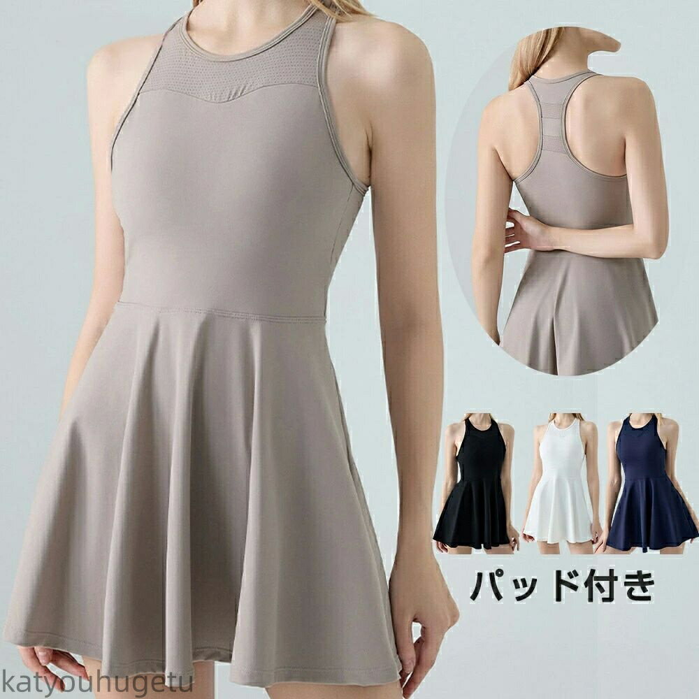 【送料無料】レディース ワンピース ゴルフウェア スポーツウェア パッド付き ミニワンピ ランニング ジム ヨガ ダンス 衣装 無地
