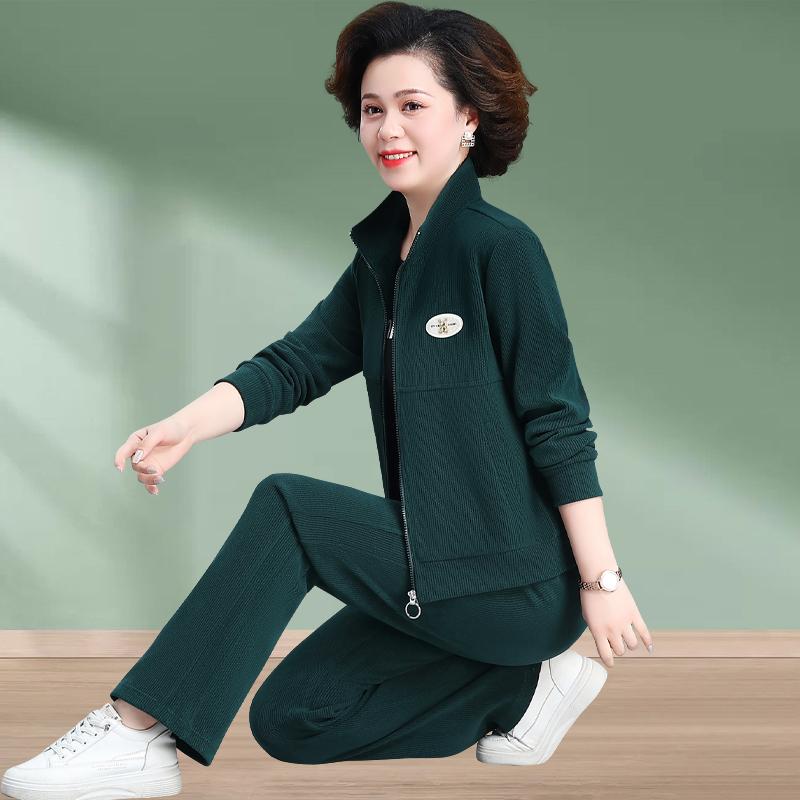 セットアップ 中高年 女性用 ミセス 春夏 おしゃれ ゆったり 伸縮性 ポリエステル ジャケット アウター 2点セット ジップアップ スタンドカラー ロングパンツ スポーツウェア ジャージ 普段使い お出かけ 小柄