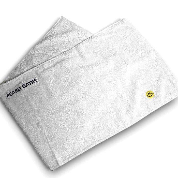 【中古】【新古品・未使用品】PEARLY GATES パーリーゲイツ ゴルフ 日本製 ヒポポタマス BC BLEND オーガニックコットン混 ワンポイント刺繍 PGスマイル フェイスタオル 053-2983304 定価8千 ホワイト FR ▲009▼51112w05