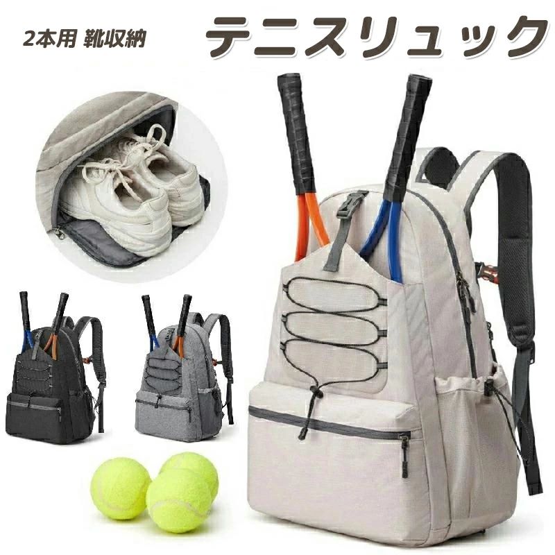 テニス バッグ リュック 2本用 テニス バックパック 靴収納付き ラケットバッグ リュック テニスバッグ バドミントンバッグ 軽量 撥水