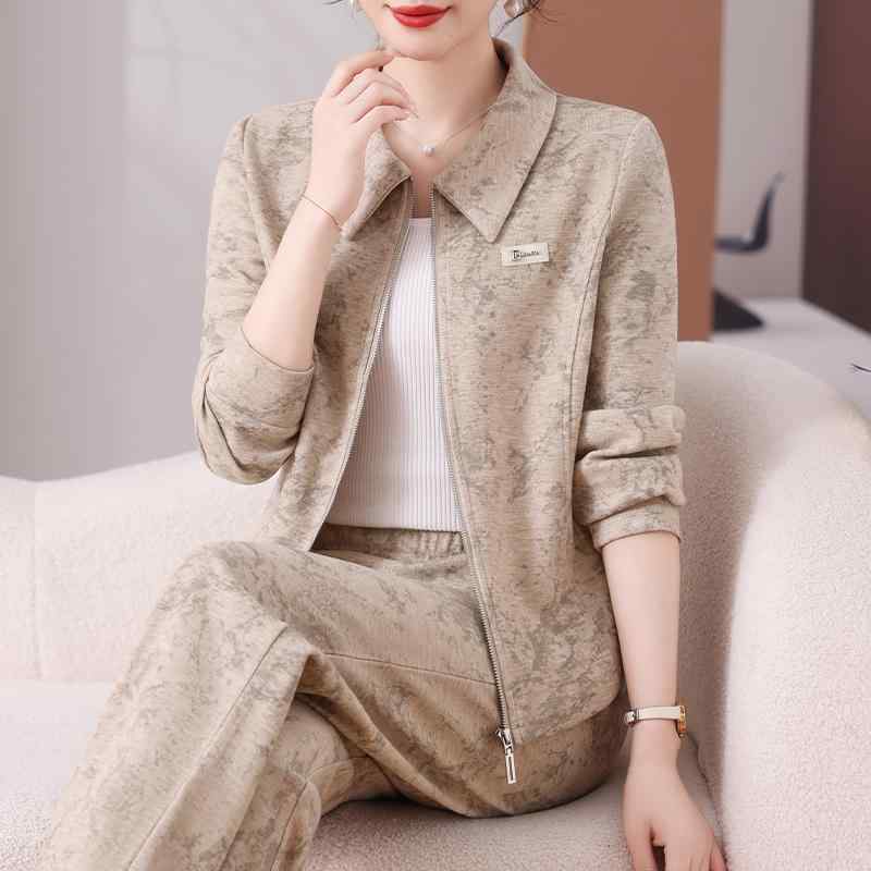 スポーツウェア レディース 春秋 おしゃれ 襟付き プリント カジュアル スウェット トレーナー ランニングウェア ジャージ セットアップ 2点セット 長袖 普段使い リラックスウェア 快適 伸縮性 吸湿速乾