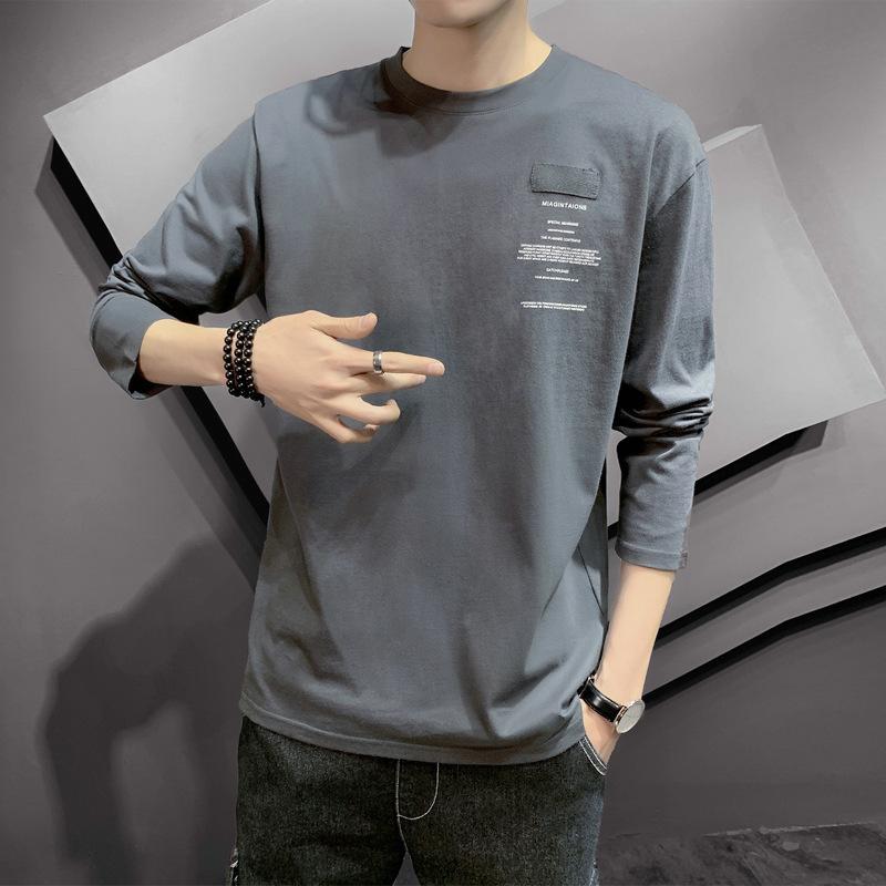 Tシャツ メンズ 男性用 長袖 INS風 ストリートスタイル オーバーサイズ ゆったりサイズ 薄手 丸首 カットソー 春夏 ポリエステル混紡 トップス カジュアル 白 グレー 黒
