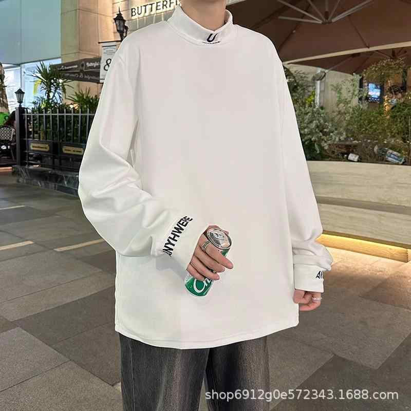 Tシャツ メンズ 春物 長袖 ハイネック カットソー ポリエステル プルオーバー トップス インナー 接触温感 吸湿性 ストレッチ 無地 カジュアル スタイル