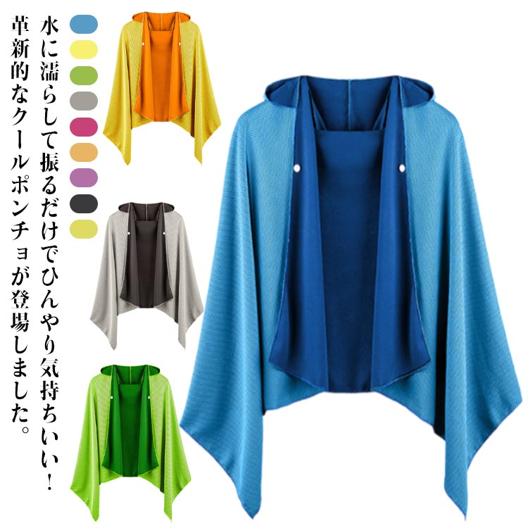 送料無料 冷感タオル 大判 クールパーカー 冷却 ポンチョ クールケープ クールタオル クールタオル UVカット 遮熱 ひんやり 涼しい 軽量 紫外線遮断 熱中症対策 抗菌防臭 運動会 熱中症対策 スポーツ 部活 プール 海 運動会