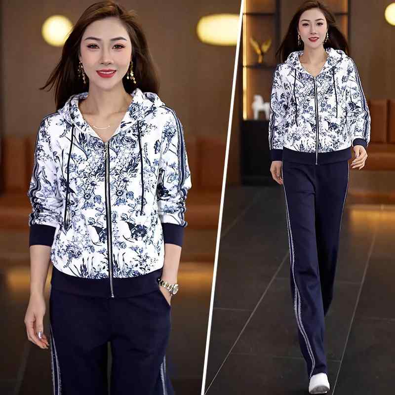 スウェット レディース セットアップ フード付き ジップアップ 長袖 ロングパンツ おしゃれ 上品 若見え 体型カバー 普段使い お出かけ リラックスウェア ワンマイルウェア 快適 ゆったり 伸縮性素材 春秋 ブルー