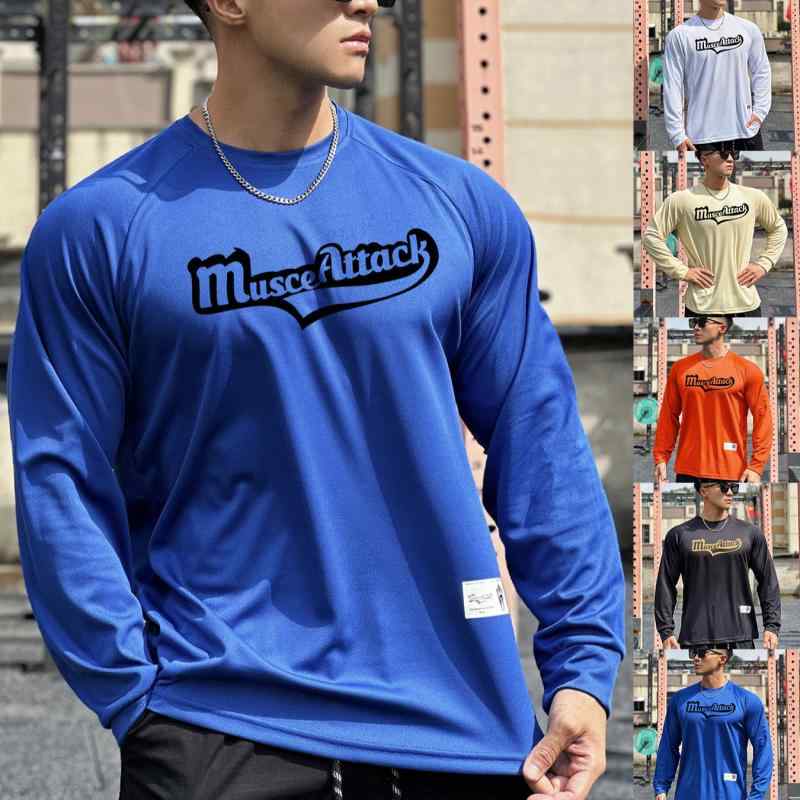 Tシャツ メンズ トレーニングウェア スポーツウェア 長袖 ポリエステル 無地 クルーネック 春秋 薄手 吸湿速乾 ランニング