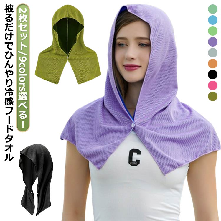 フードタオル 冷感 冷感タオル 冷感 フード タオル 2枚組 冷却 クールタオル 冷却タオル ひんやり 涼しい 熱中症対策 スポーツ 部活 60×30cm UVカット 熱中症対策 uvカット 冷感持続 吸汗速乾 携帯便利 暑さ対策グッズ ひんやりグッズ