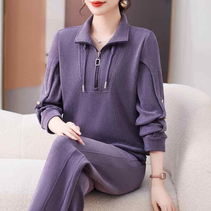 ジャージ レディース 女性用 ベロア スウェット セットアップ おしゃれ 個性的 若見え エイジレス 立襟 ハーフジップ 長袖 ロングパンツ 伸縮性 普段使い 春秋