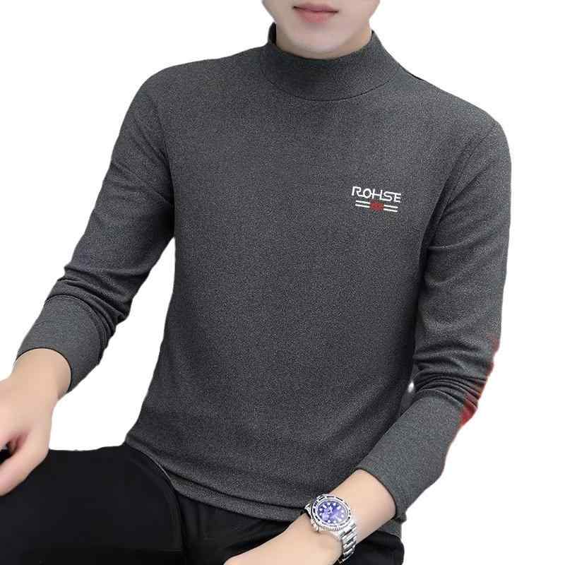 Tシャツ メンズ 男性用 カットソー 秋冬 長袖 裏起毛 スリムフィット ハイネック トップス インナー あったか 暖かい カジュアル 無地 黒 白 カーキ