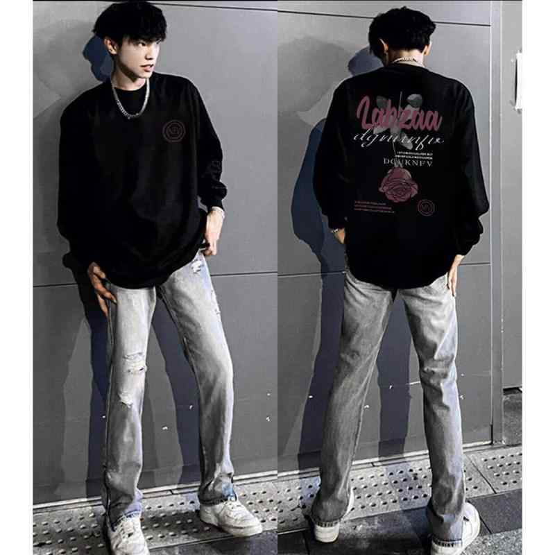 Tシャツ メンズ 長袖 コットン 秋物 プルオーバー トップス ラウンドネック プリント ゆったり ブラック 黒 グレー バーガンディ ネイビー 紺色 M L XL 2XL 3XL 4XL 5XL