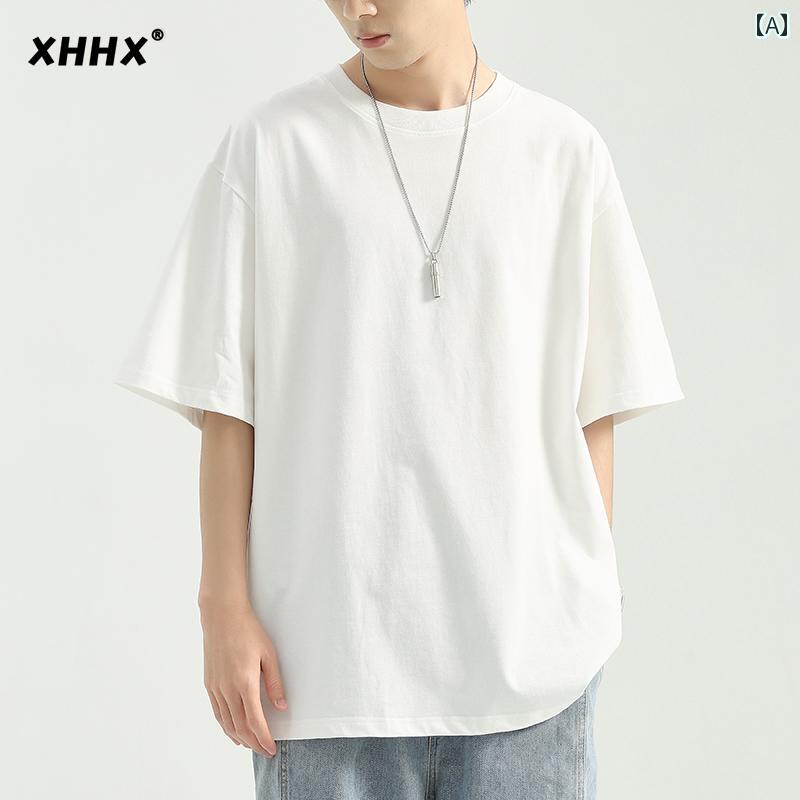 Tシャツ 無地 綿 半袖 Tシャツ メンズ 夏 薄手 ゆったり 厚手 白 五分袖 トップス カジュアル