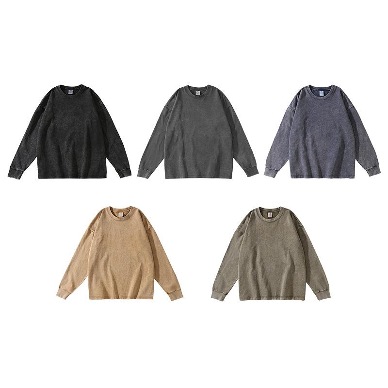 Tシャツ メンズ 無地 長袖 コットン 厚手 ビッグシルエット ラウンドネック トップス プルオーバー オリーブグリーン ブラック カーキ 深藍色 炭グレー アメカジ 水洗い加工