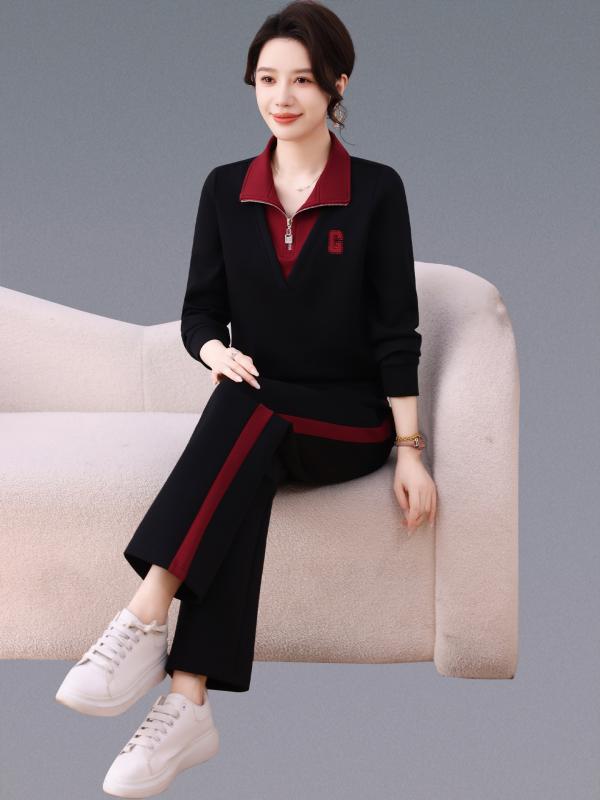 スウェットセットアップ レディース 秋物 韓国 かわいい カジュアル リラックス 普段使い ルームウェア 長袖 プルオーバー 長ズボン 綿混 黒 カーキ レッド系