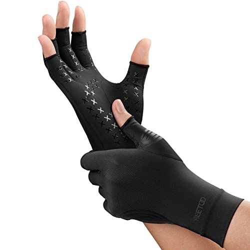 [FREETOO] 指サポーター 関節固定負担軽減 着圧手袋 防臭抗菌 吸汗速乾 軽量 薄い手袋 滑り止め 仕事 家事 育児 パソコン/スマホ操作 スポーツ 男女兼用 ゲーミング手袋?? ブラック XSサイズ