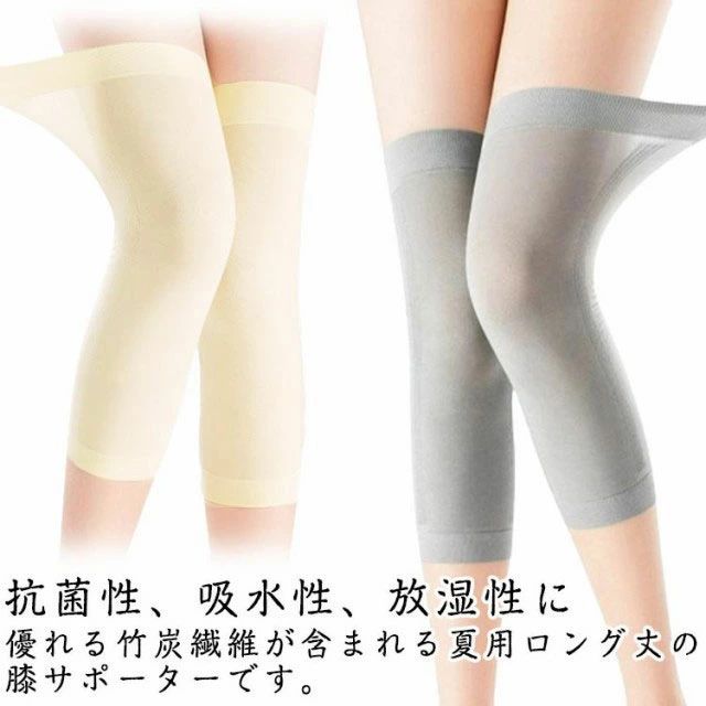 抗菌性、吸水性、放湿性に優れる竹炭繊維が含まれる夏用ロング丈の膝サポーターです。膝にピッタリフィットして蒸れずにサラッと温めます。冷え対策・冷房対策もおすすめ!ロングサイズなので膝からふくらはぎまで温めます。薄手で伸縮性のある素材で履き心地抜群!通気性が良く蒸れにくい構造の吸汗素材です。 サイズ M L XL サイズについての説明 M 体重35-50kg L 体重50-65kg XL 体重65-80kg 素材 ポリエステル 竹炭繊維 色 グレー ベージュ 備考 ●サイズ詳細等の測り方はスタッフ間で統一、徹底はしておりますが、実寸は商品によって若干の誤差(1cm〜3cm )がある場合がございますので、予めご了承ください。 ●商品の色は、撮影時の光や、お客様のモニターの色具合などにより、実際の商品と異なる場合がございます。あらかじめ、ご了承ください。 ●製品によっては、生地の特性上、洗濯時に縮む場合がございますので洗濯時はご注意下さいませ。 ▼色味の強い製品によっては他の衣類などに色移りする場合もございますので、速やかに(脱水、乾燥等)するようにお願いいたします。 ▼生地によっては摩擦や汗、雨などで濡れた時は、他の製品に移染する恐れがございますので、着用の際はご注意下さい。 ▼生地の特性上、やや匂いが強く感じられるものもございます。数日のご使用や陰干しなどで気になる匂いはほとんど感じられなくなります。