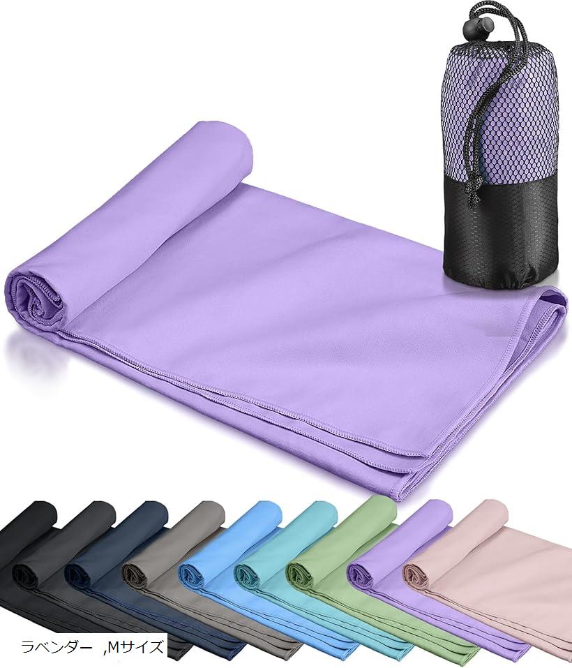 速乾タオル 登山 スポーツタオル 超軽量 コンパクト 吸水速乾タオル マイクロファイバータオル バスタオル ミニバスタオル フェイスタオル アウトドア 旅行 収納袋付き(ラベンダー, Mサイズ)