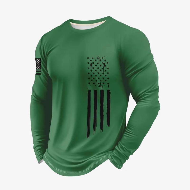 Tシャツ メンズ 男性用 長袖 トップス ラウンドネック 幾何学模様 国旗風 プリント ポリエステル スタイリッシュ(x2)