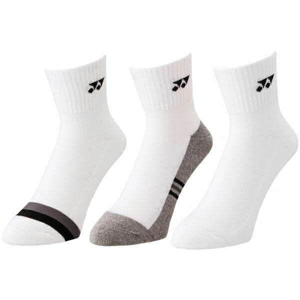 ジュニア用アンクルソックス3足セットホワイトベースにシンプルなロゴ入りのジュニアソックス3足セット。足底パイル仕様。【メーカー】ヨネックス YONEX【カラー】080:アソート【素材】綿67%、ポリエステル21%、ナイロン9%、ポリウレタン3%