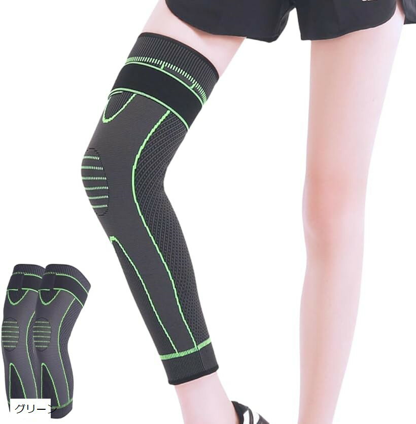 膝サポーター ニースリーブ ロング 加圧ベルト スポーツ用 理学療法士 ケガ予防 ニーガード 膝保護 登山 ランニング バスケ用 男女兼用 2枚入 グリーン