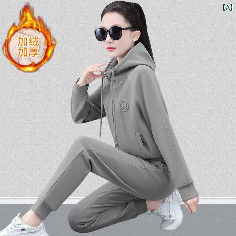 セットアップ レディース 裏起毛 フード付き スウェットパーカー ジャージ スポーツウェア ランニング ジョギング カジュアル 普段着 秋冬 長袖 ロングパンツ ポリエステル 上下セット 2点セット ブラック チャコールグレー