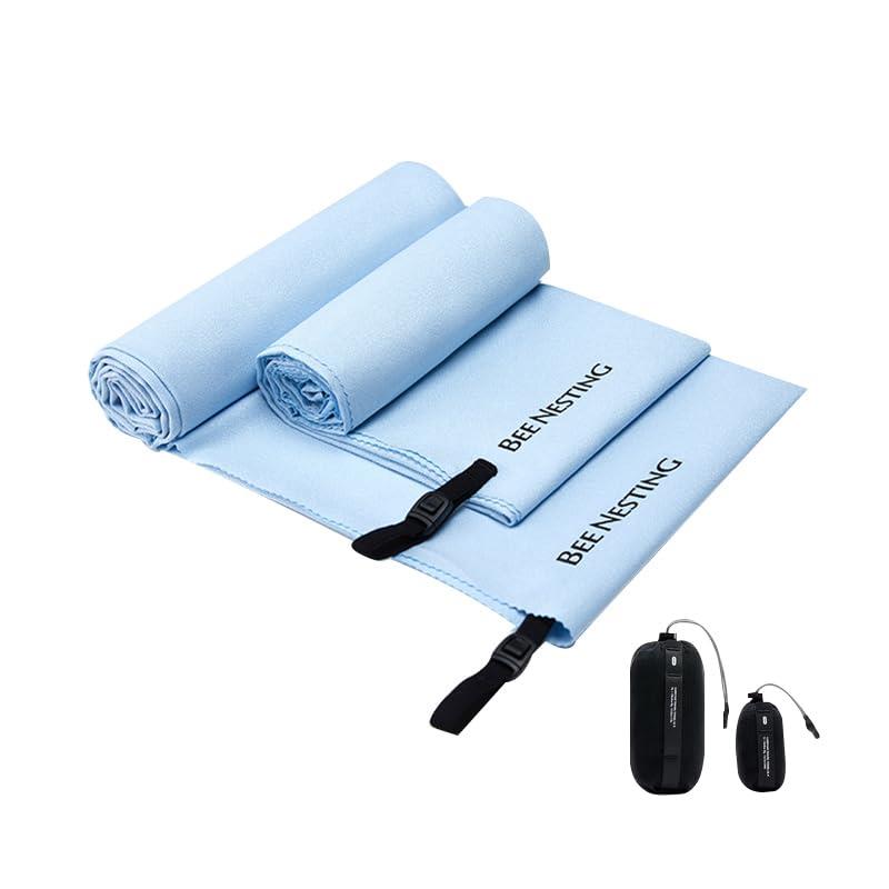 BeeNesting 超軽量速乾タオルの M&S 2点セット マイクロファイバー製 でコンパクトな収納ポケット付きスポーツタオル バックパッキング、 旅行、 ビーチ 、ジム、 キャンプ、 スイミング、 ヨガ(ブルー、M&S 2枚セット)