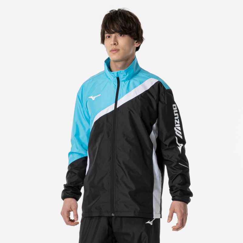 MIZUNO ミズノ ウィンドブレーカージャケット(総裏メッシュ/ラケットスポーツ) ブラック×ブルーアトール テニス ウエア